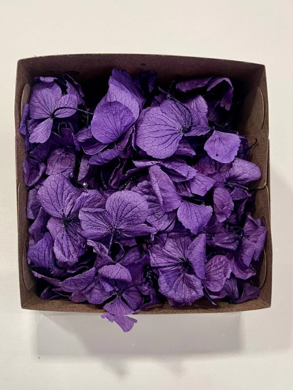 Quantidade: Cada caixa mede 12x12x6 centímetros e contém entre 30 e 40 gramas de infloredelicadas flores de hortênsia preservada, prontas para enriquecer seus projetos.